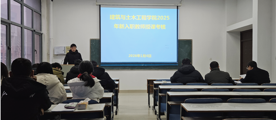 为进一步加强师资队伍建设,规范新入职教师的培养与管理,提升教学能力。2026年1月4日上午,建工学院在综合实验楼107教室举行2025年新入职教师授课考核。副院长袁晓辉,教学督导专家张宗领、胡兵立担任评委,袁晓辉任评审组组长。