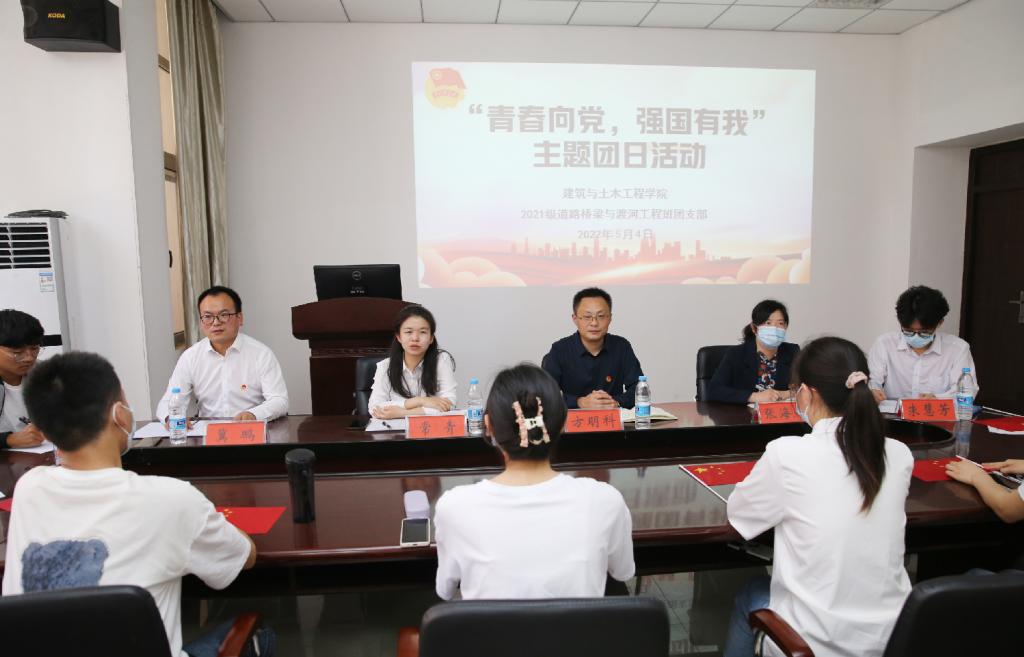 5月4日下午,英国上市官网3652021级道路桥梁与渡河工程班团支部“青春向党 强国有我”主题团日活动在综合实验楼206会议室举行。校团委副书记常青、英国上市官网365党委书记方明科、党委副书记冀鹏和共青团员代表共40余人参加活动。活动由班级团支书赵琦琦主持。