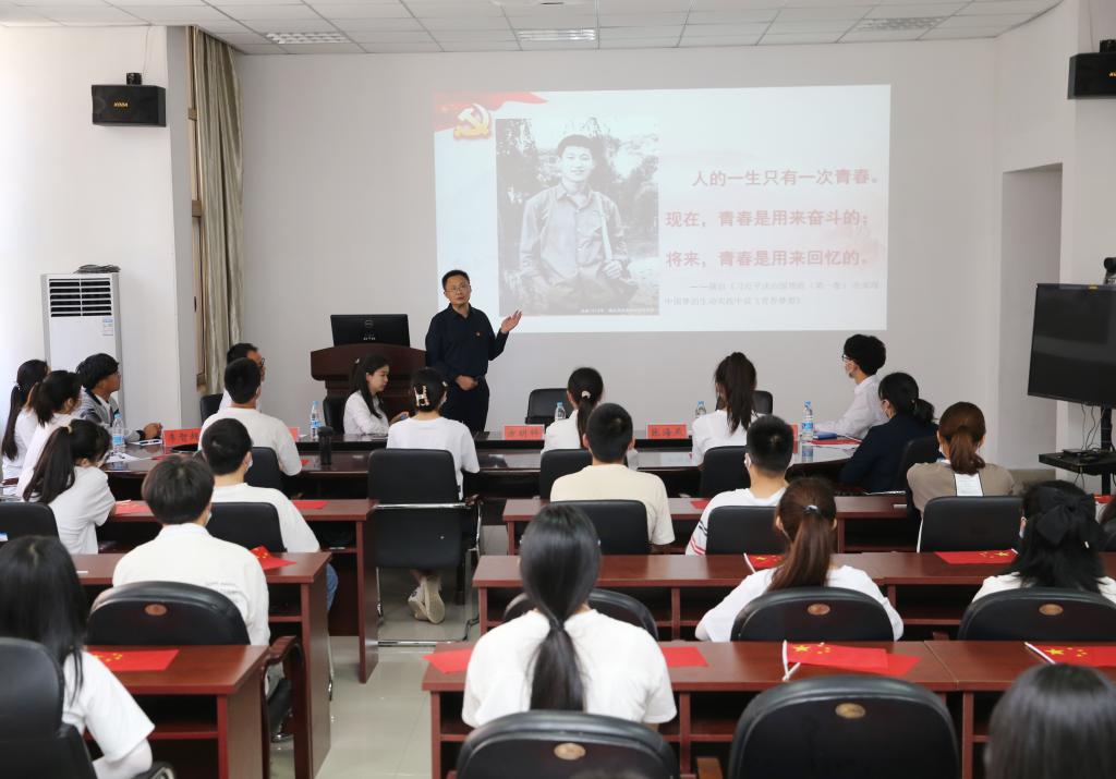 方明科以《永远跟党走,奋进新征程》为题讲授微团课。他讲述了习近平总书记在梁家河的七年知青岁月中的奋斗故事,带领与会团员学习了党的十八大以来习近平总书记对新时代青年的殷切厚望和深情寄语,希望大家牢记总书记的殷殷嘱托和谆谆教诲,听党话、跟党走,立志民族复兴,唱响新时代的青春之歌。