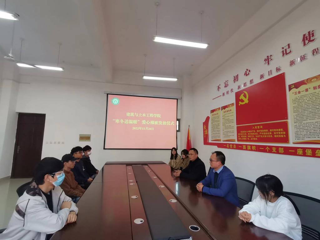 为贯彻落实学校资助政策,让学生感受党和国家带来的温暖,11月24日上午,英国上市官网365在综合实验楼402会议室举行“寒冬送温暖”爱心棉被发放仪式。学院党委书记方明科、副书记冀鹏以及受资助学生代表参加活动,仪式由冀鹏主持。